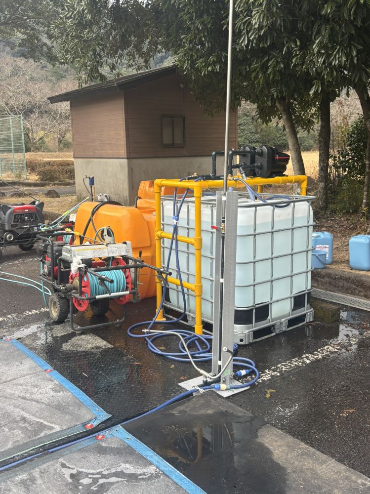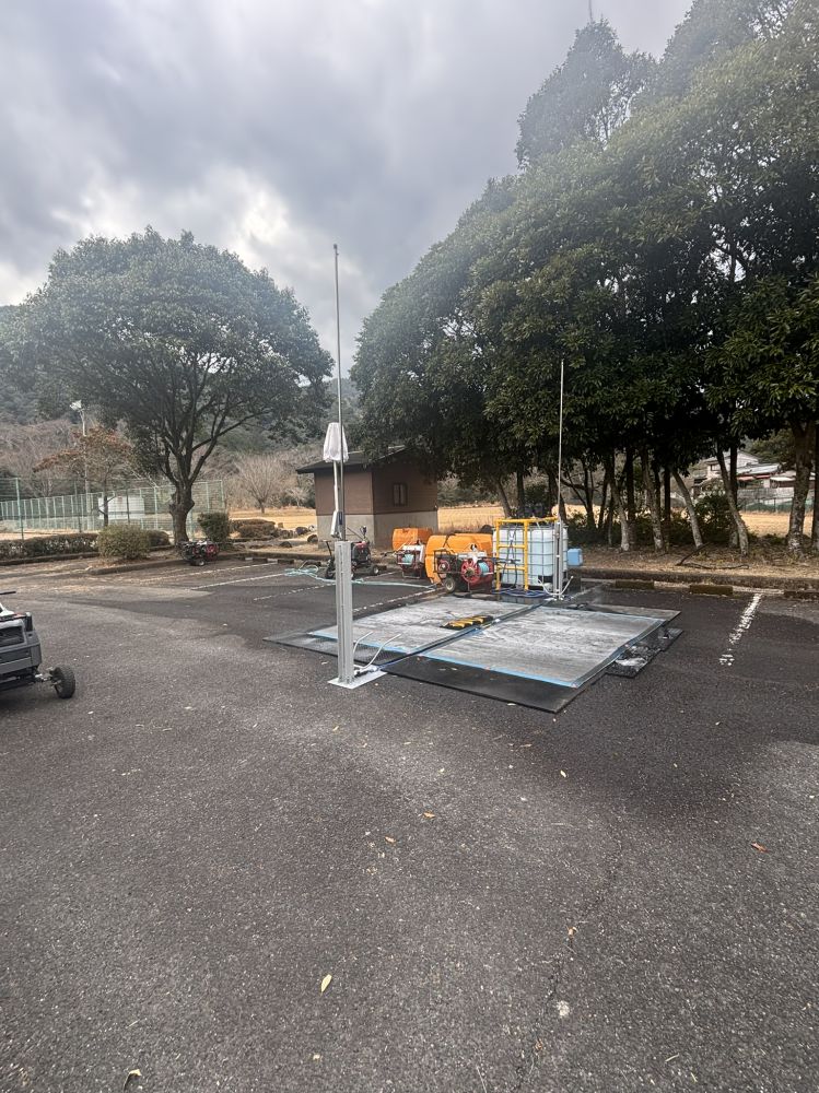 1月に発生しました宮崎県延岡地区の各消毒ポイント(北川総合運動公園)に当社の移動式消毒ゲートを設置して頂きました。